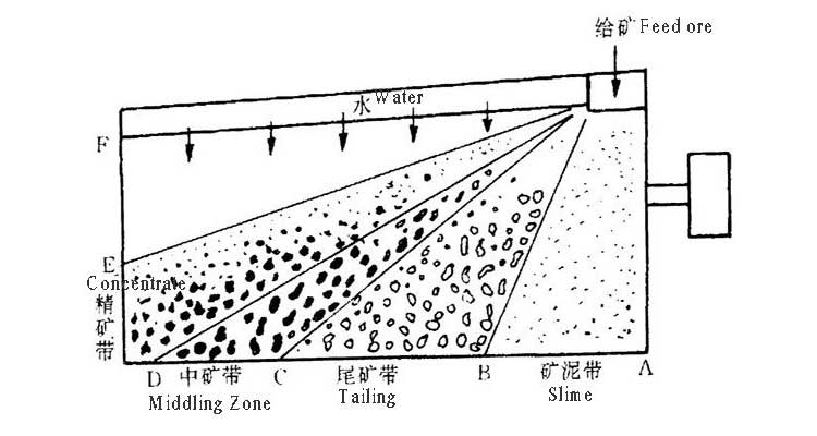 由于不同密度的礦物顆粒在振動和水流的共同作用下具有不同的沉降速度,因此它們會逐漸分層,并按照密度從低到高的順序移動到床上的不同位置。最終,通過調整床層的傾斜角度和振動參數(shù),可以將不同密度的礦物顆粒從床層的精礦和尾礦口排出,從而實現(xiàn)礦物的有效分離。